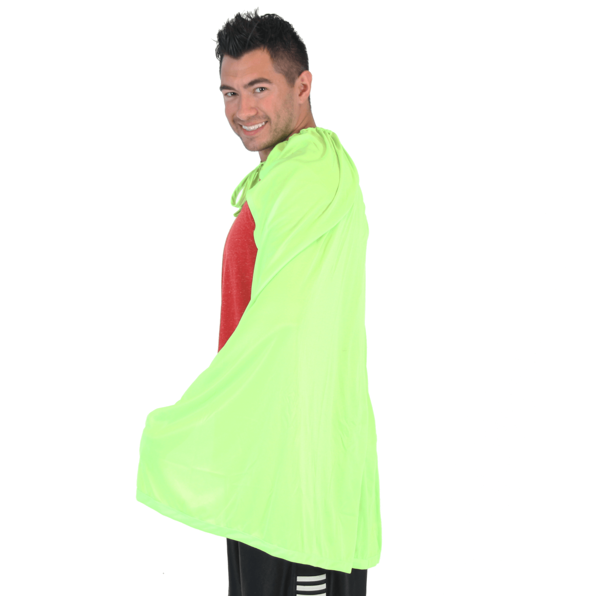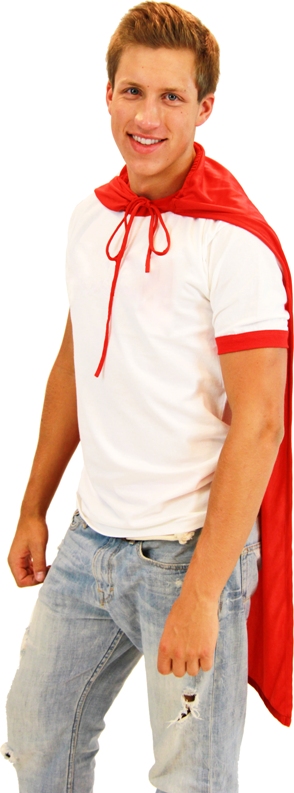 Put it over your back, tie it down and get ready to fly. This red cape is a great prop that was used in many shows. These capes fit children and adults. They just need to be tied accordingly of course.