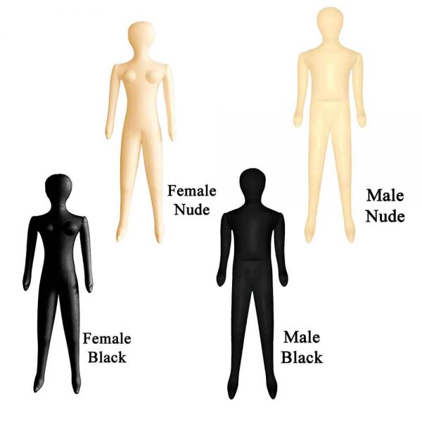 - Includes: An inflatable blow up mannequin with choice of either male or female and in black or nude.