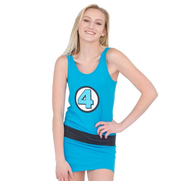 Susan Storm AKA Invisible Woman was part of the Fantastic Four team. The Fantastic Four tank dress is an officially licensed Marvel comics product. This Marvel tank dress is great for group costumes or comic conventions.
