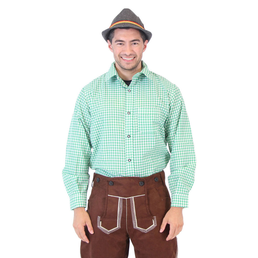 Our Oktoberfest plaid shirt comes in three colors and six sizes. The button up shirt compliments a lederhosen well to give a complete German look. Dress up to support the occasion of Oktoberfest.